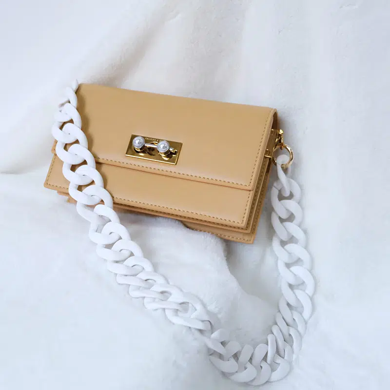 La chaîne de sac à main en résine givrée pour femme est composée d’une chaîne de maillons entrelacés et d’accroches en métal dorées. Résistante, elle est proprement fixée à l’anneau grâce à deux mousquetons tournants et ne se détachera pas facilement. Cette chaîne est très légère, et assez longue et pratique pour être portée en bandoulière.