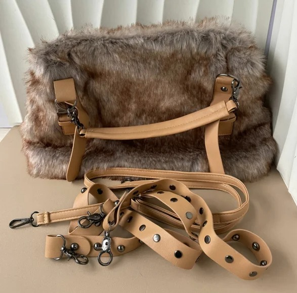 Ce sac bandoulière en fausse fourrure a été conçu pour apporter un mélange unique de douceur et d’élégance. Sa texture effet peluche crée immédiatement un look cocooning, parfait pour la saison froide.