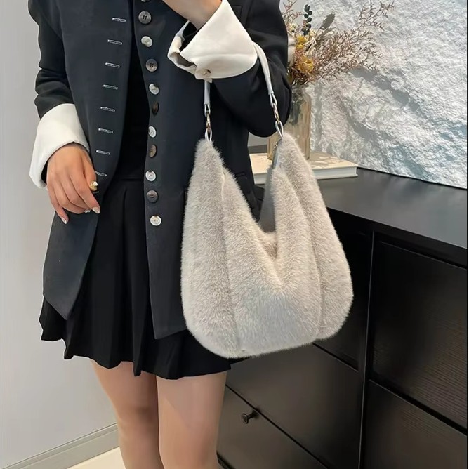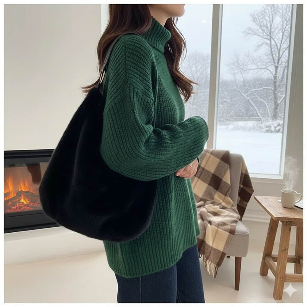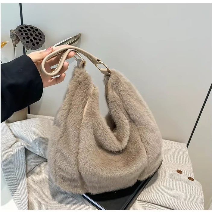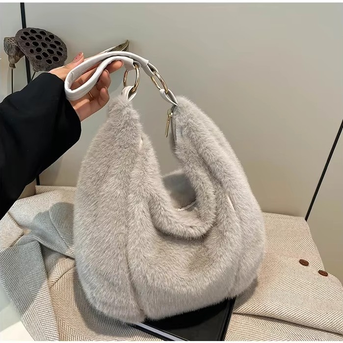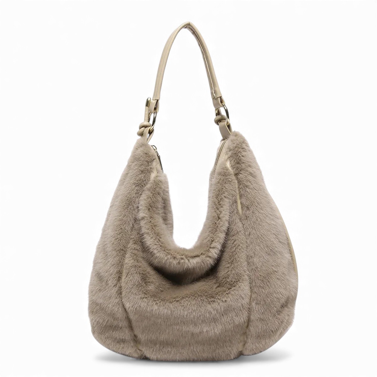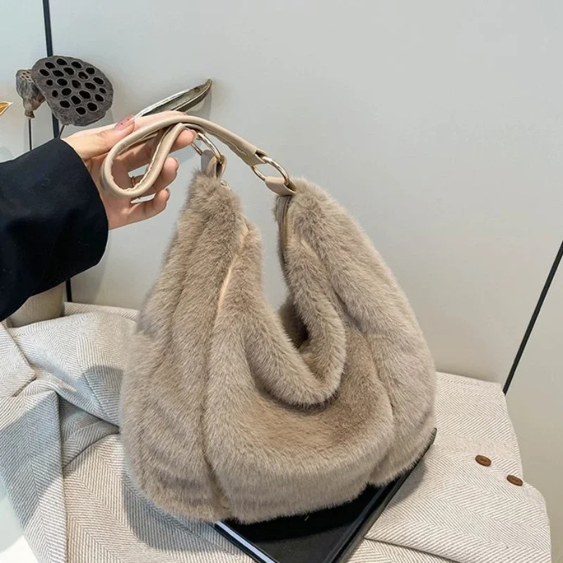Avec son revêtement en fausse fourrure ultra-douce, ce sac devient votre allié cocooning de l’hiver.