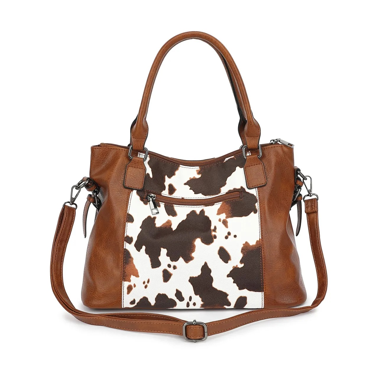 Adoptez le style cow print, véritable tendance mode du moment. Ce sac fourre-tout met en valeur un motif vache élégant et moderne, associé à des finitions en cuir synthétique texturé.