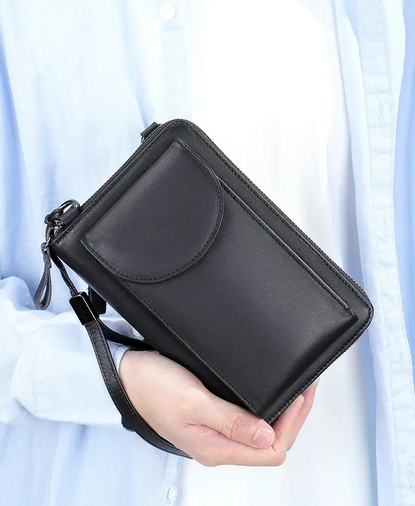 Cette pochette est conçue pour répondre à vos besoins quotidiens. La bandoulière en cuir véritable est réglable en longueur, vous permettant ainsi de choisir la position la plus confortable pour la porter. À l’avant, une poche pratique avec une fermeture à bouton pressoir aimanté vous permet de garder votre smartphone à portée de main en toute sécurité. L’arrière de la pochette présente une poche semi-accordéon avec fermeture éclair, parfaite pour ranger vos pièces de monnaie de manière organisée et accessible.