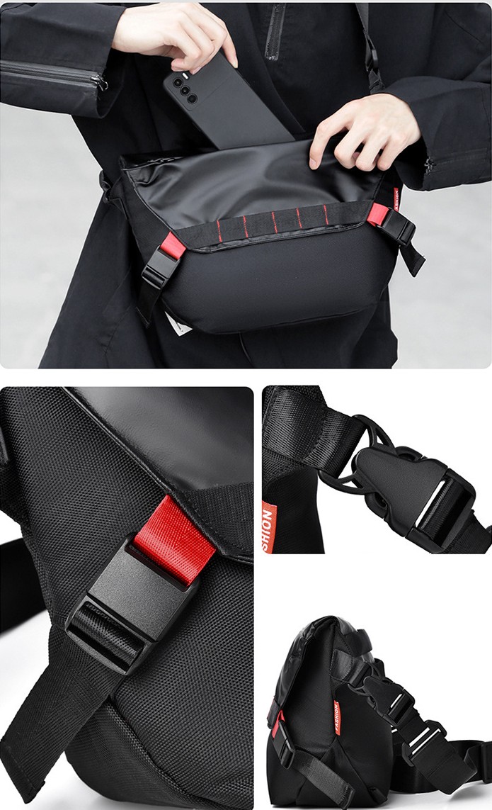 Sa forme ergonomique permet de transporter facilement votre portefeuille, clés, téléphone, gourde ou même une tablette 8 pouces.